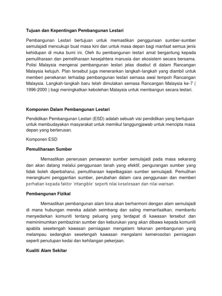 Tujuan Dan Kepentingan Pembangunan Lestari Pdf